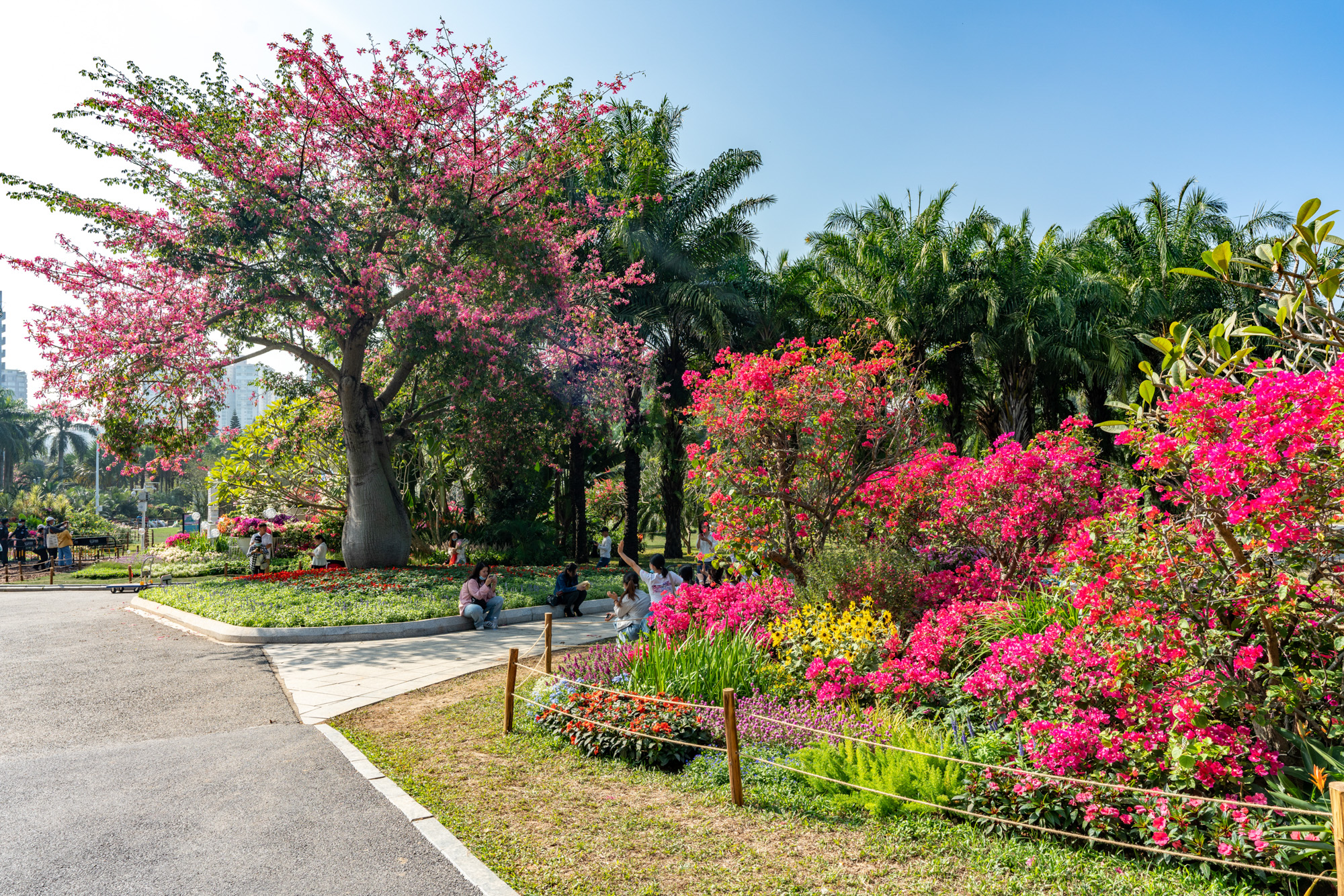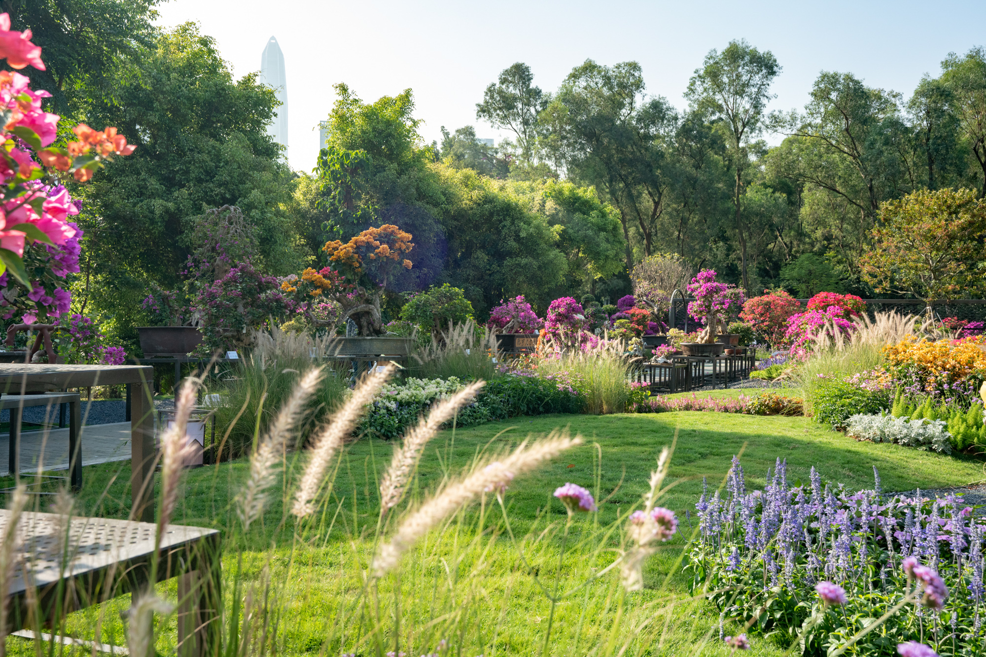 植物配置上,該園以簕杜鵑為骨架,搭配多年生花卉和灌木,以“四季”作為花境的核心理念,讓市民充分感受多彩花境的自然之美。