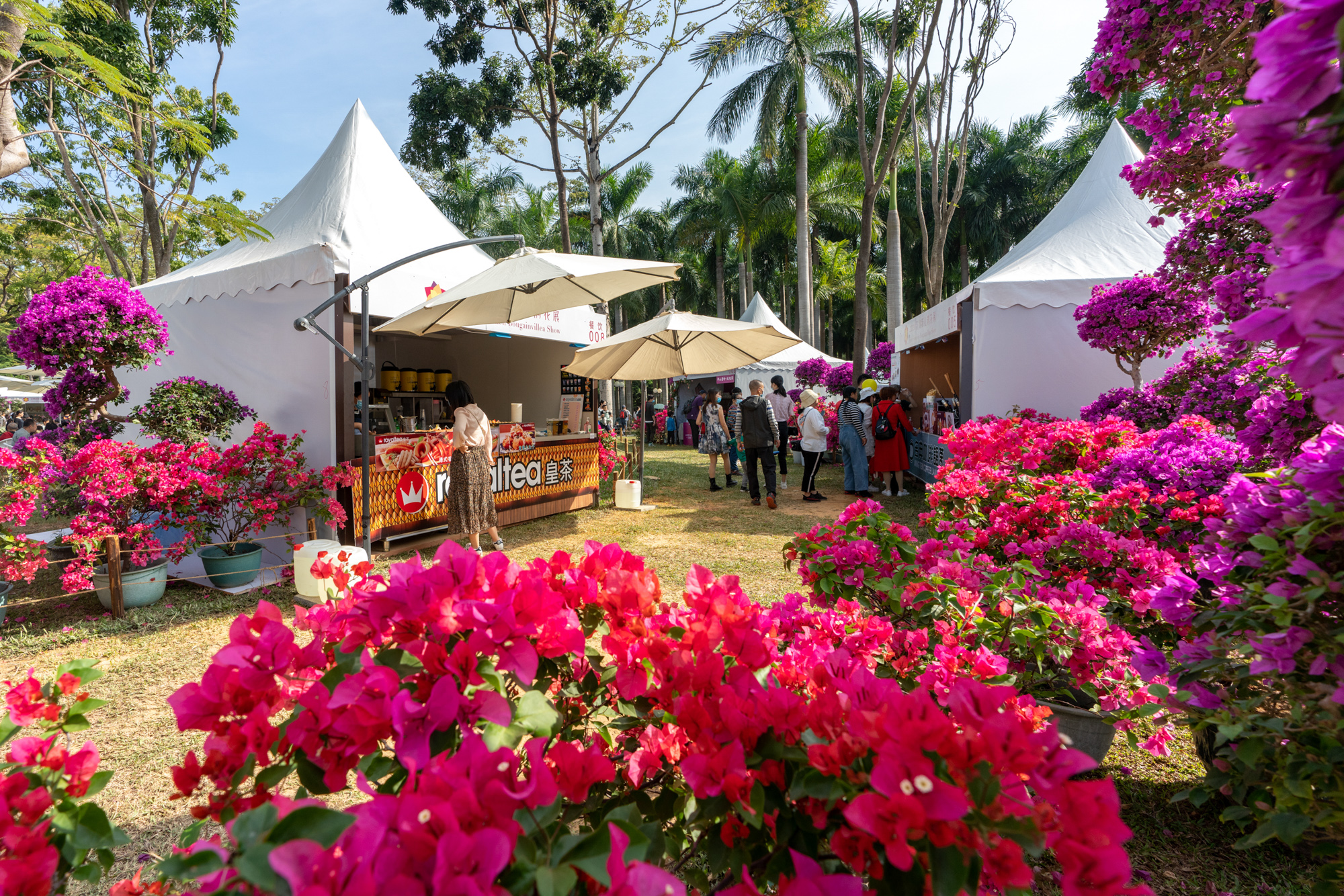 城市花集位于蓮花山公園藍(lán)楹路與紅棉路交匯的大草坪區(qū)域,展區(qū)總面積約2300平方米,共布置36個攤位。其中花卉園藝攤位27個,主要售賣鮮切花、小型盆栽、多肉植物、干花、花種、花肥,以及與園藝相關(guān)的工具和文創(chuàng)產(chǎn)品等;餐飲服務(wù)攤位有9個,使市民在逛花展的同時,也可品一杯咖啡或花茶,放松身心。不僅豐富了市民、游客的賞花和觀展體驗,更能讓大家把花與美帶回家,使觀展的幸福感得以延續(xù)。