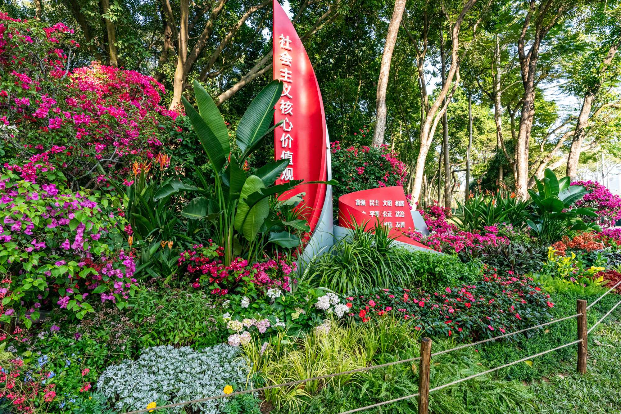 12個主題花園,每個主題花園占地約300平方米,分別由福田、羅湖、南山、鹽田、寶安、龍崗、坪山、龍華、光明區(qū)和大鵬新區(qū),以及前海管理局、深汕合作區(qū)組織相關(guān)單位參展。各區(qū)(各單位)的主題花園巧妙結(jié)合場地特點,融合傳統(tǒng)與現(xiàn)代的設(shè)計理念,以及各區(qū)的人文特色,運用現(xiàn)代園藝、花藝和科技的造景手法,展現(xiàn)了自然生態(tài)、綠色宜居、智慧科技的美麗家園。