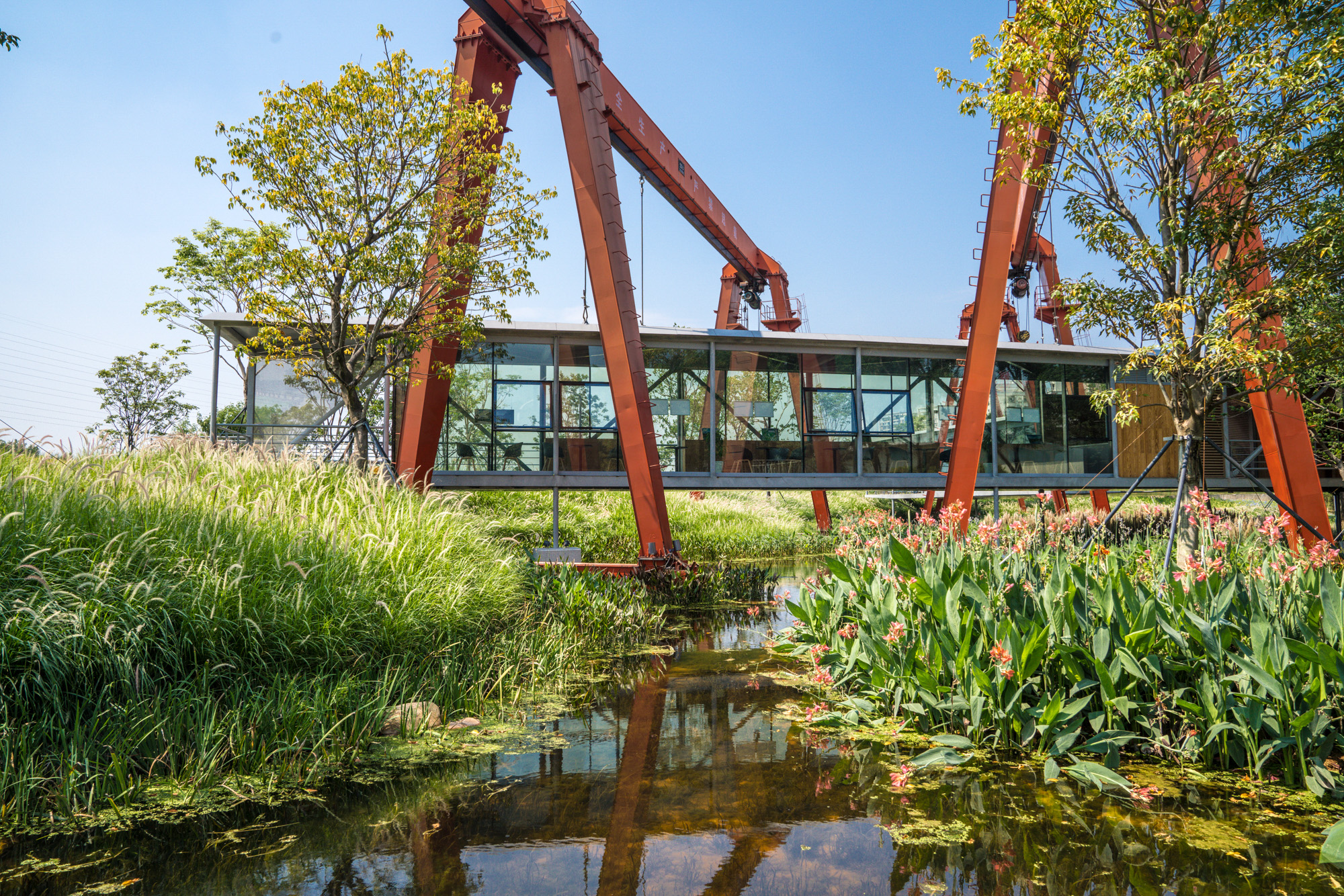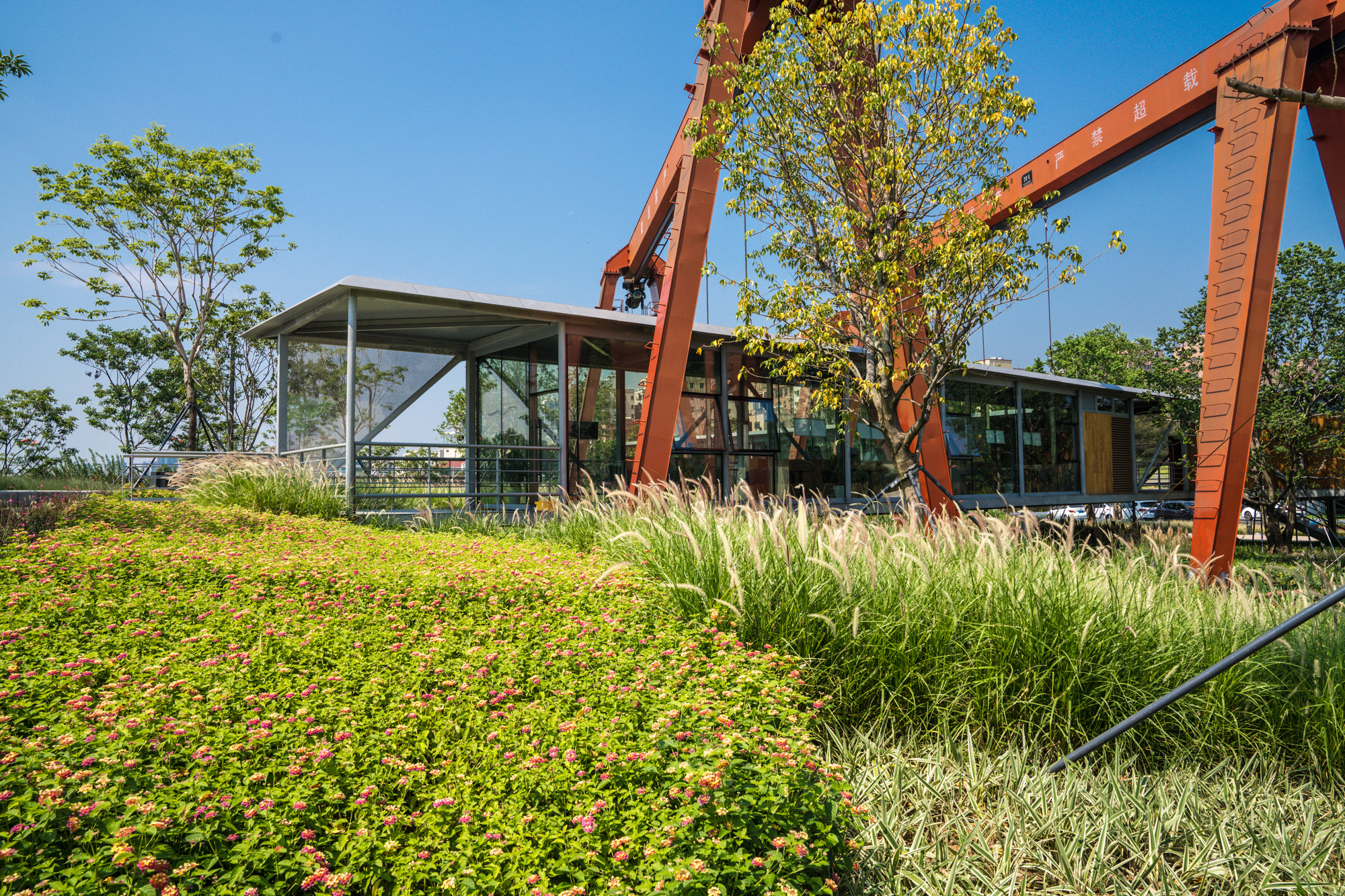 利用“懸亭靜泊”驛站上方的現(xiàn)狀龍門吊的懸吊能力,結(jié)合驛站功能形成特色的門戶標(biāo)志,整個場地以輕介入最小限度開發(fā),最終成為工業(yè)記憶、生態(tài)景觀與休憩活動復(fù)合共生的生態(tài)廊道示范點(diǎn)。