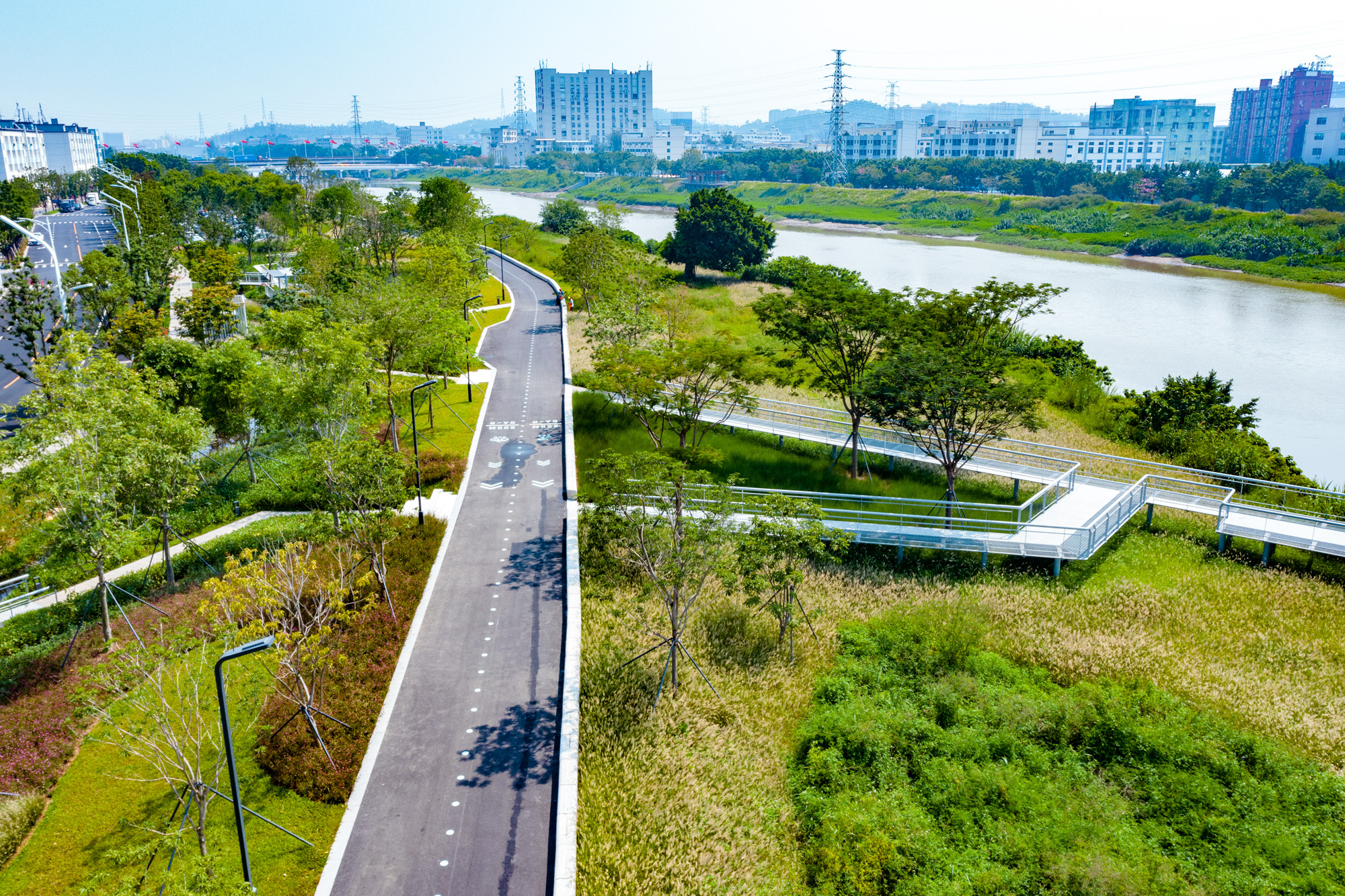 2019年年底,深圳積極響應(yīng)廣東省委省政府建設(shè)萬里碧道的號召,創(chuàng)造性地提出了“碧一江春水、道兩岸風(fēng)華”的碧道愿景,對茅洲河開展水質(zhì)整治工程建設(shè)及河岸綠化提升。試點(diǎn)段以茅洲河為主線,以沿線路網(wǎng)與現(xiàn)狀空間結(jié)構(gòu)為基礎(chǔ),通過區(qū)域生態(tài)環(huán)境優(yōu)化、流域空間復(fù)合利用、產(chǎn)業(yè)結(jié)構(gòu)轉(zhuǎn)型以及城市功能提升,建設(shè)集“行洪通道、生態(tài)廊道、休閑漫道、文化驛道、產(chǎn)業(yè)鏈道”于一體的高品質(zhì)濱水空間。
