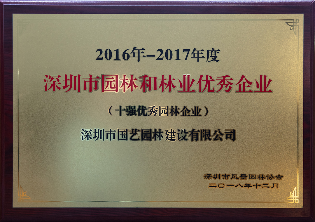 ▲國(guó)藝園林獲得深圳市十強(qiáng)優(yōu)秀園林企業(yè)及優(yōu)秀設(shè)計(jì)獎(jiǎng)