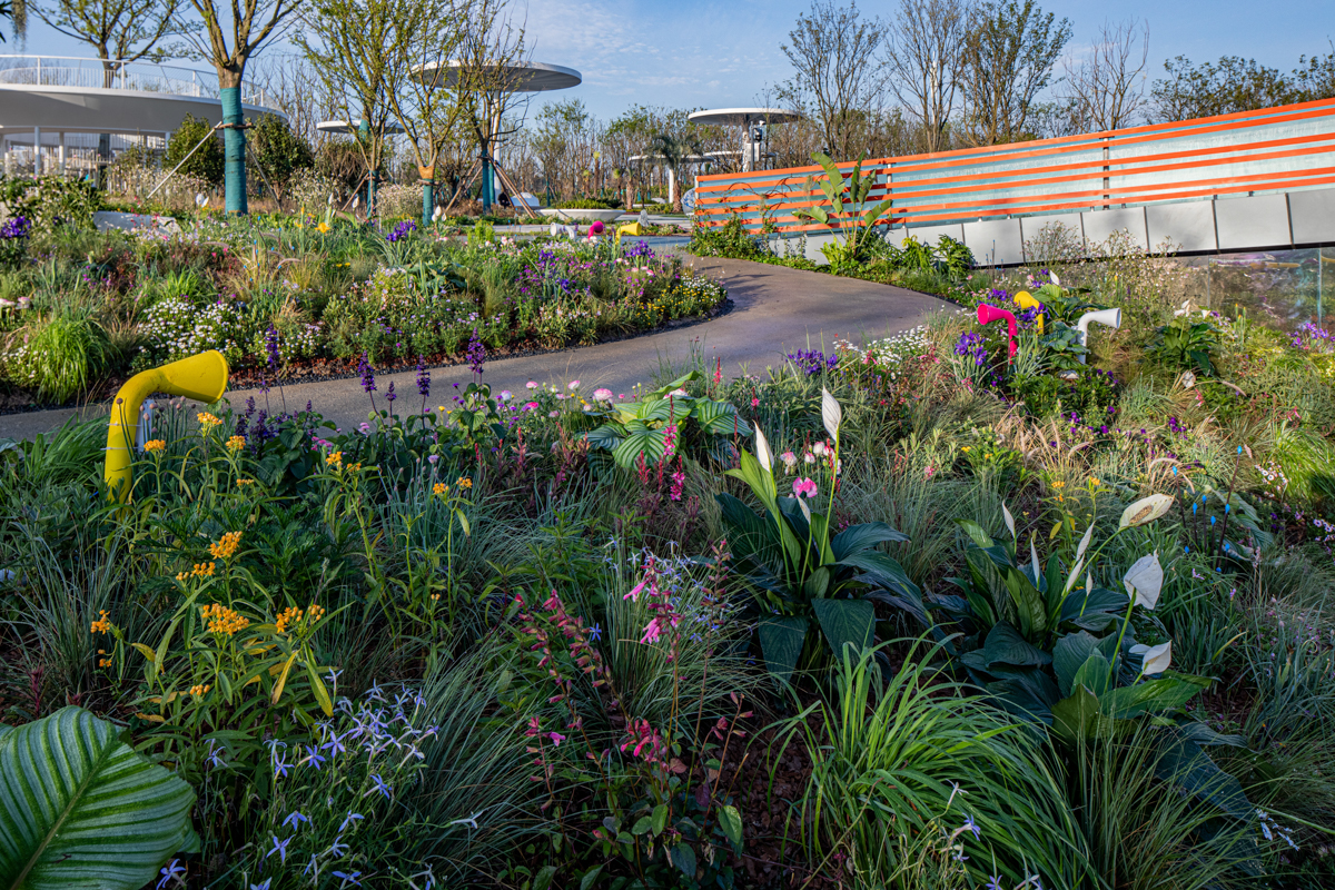 在景觀草花卉選型方面,展園則多用色彩素雅多變的植物,沿道路設(shè)計(jì)加強(qiáng)展園流線感以及進(jìn)入感,為游人帶來別樣的景觀感受。