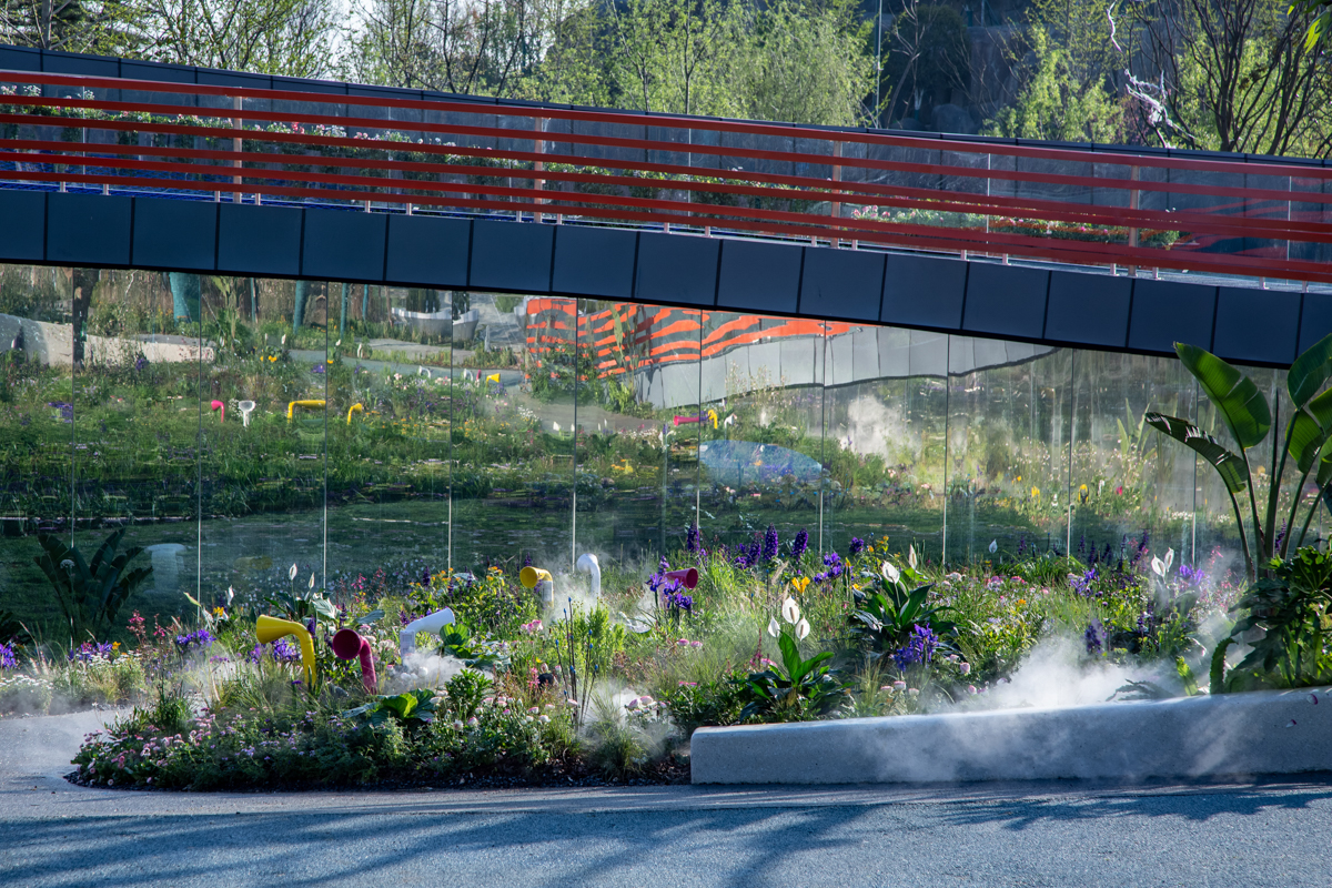 單面鏡互動(dòng)能為內(nèi)部游人帶愛360度景觀體驗(yàn),為外部游客帶來無遮擋景觀視線,將園內(nèi)景觀印于鏡上,形成環(huán)抱的靜謐視覺花園。