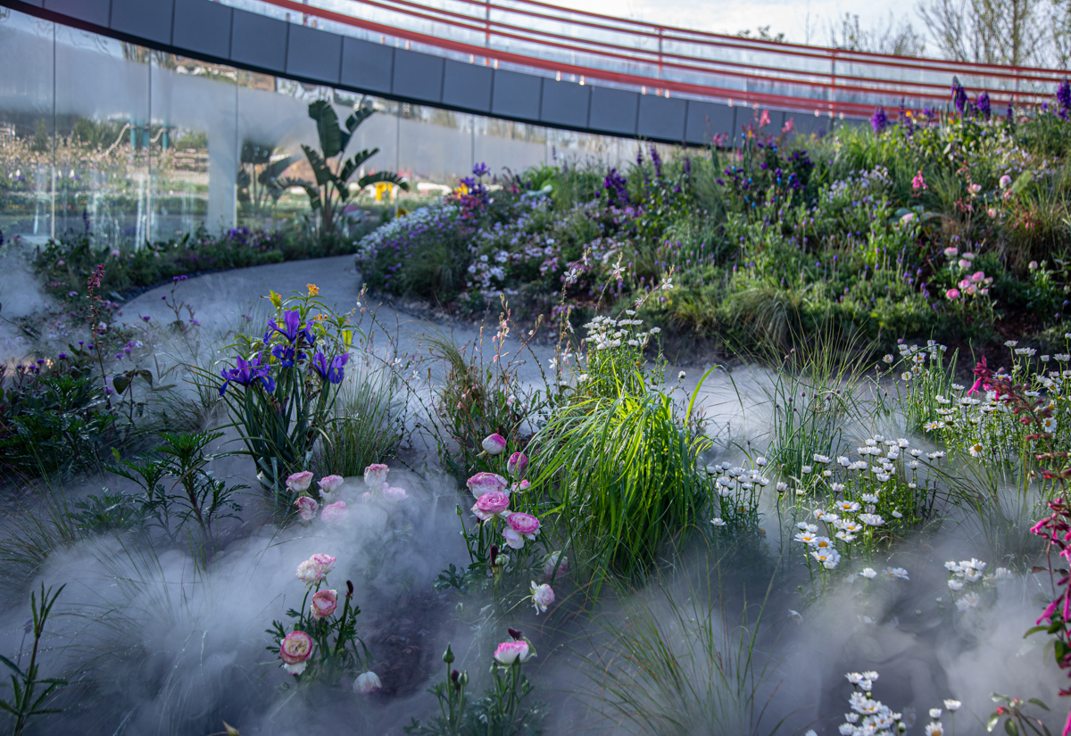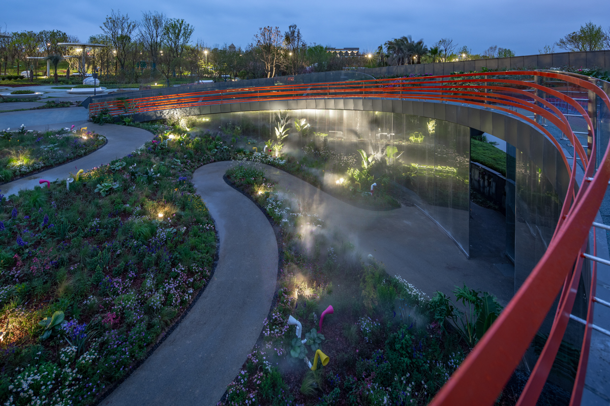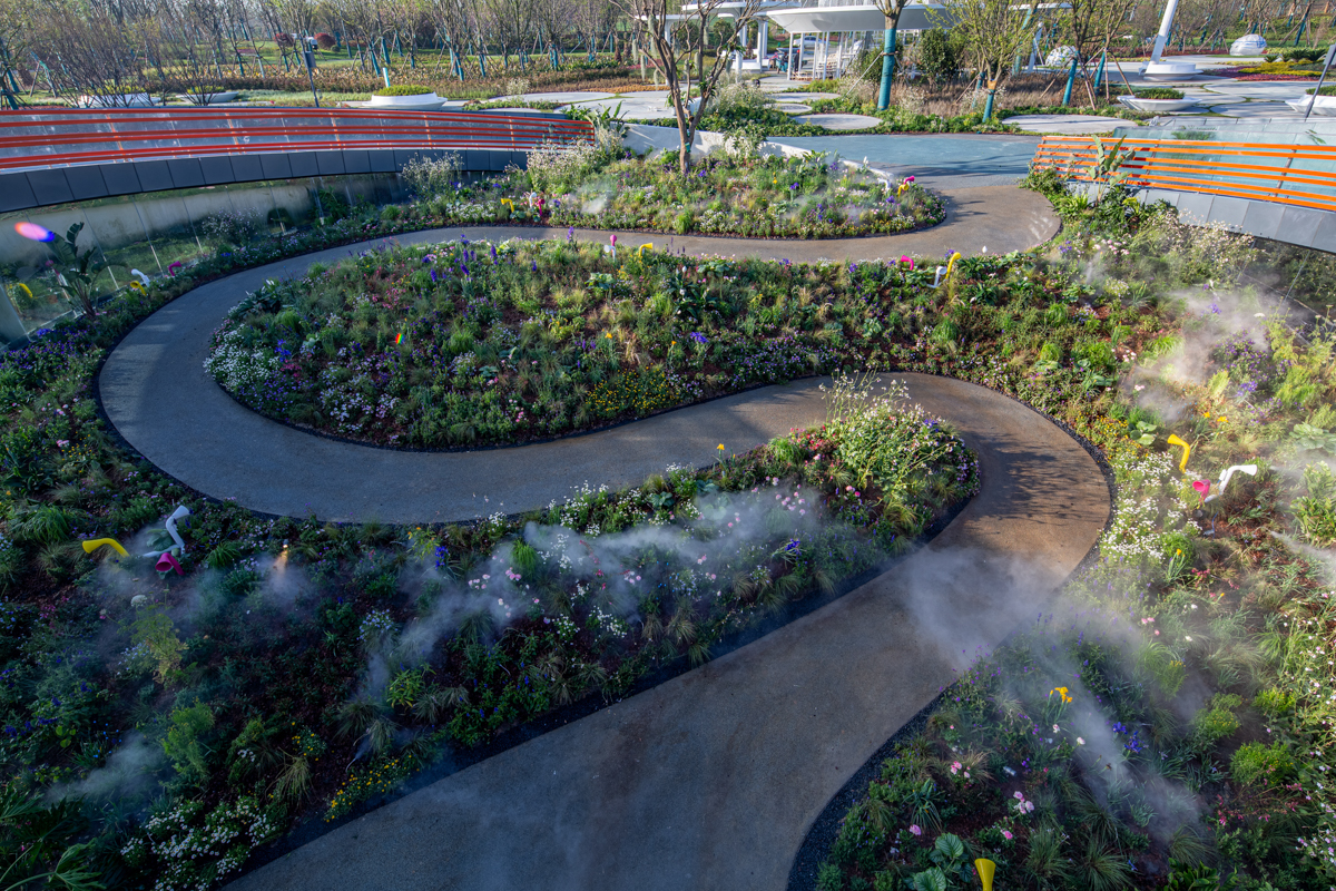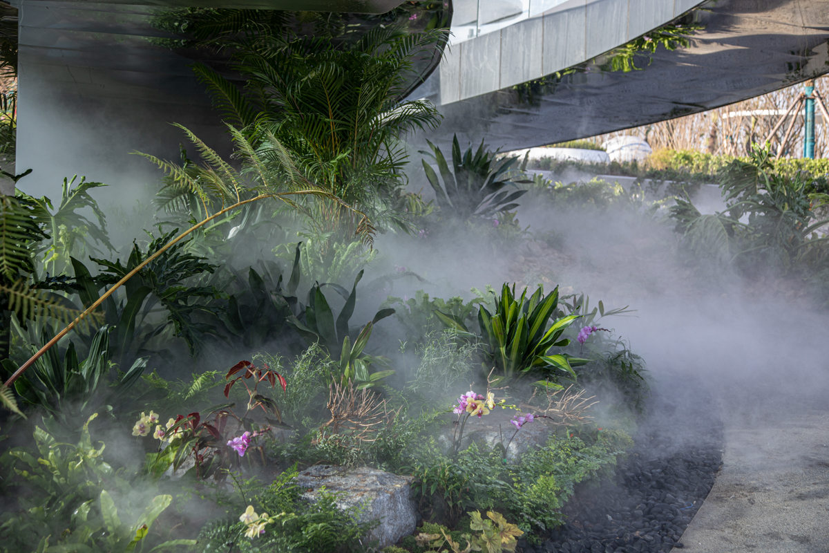 智能噴霧系統(tǒng)能在高溫的天氣下制造景觀噴霧再為游人帶來涼爽的同時(shí)增強(qiáng)了設(shè)計(jì)的空間飄浮效果。