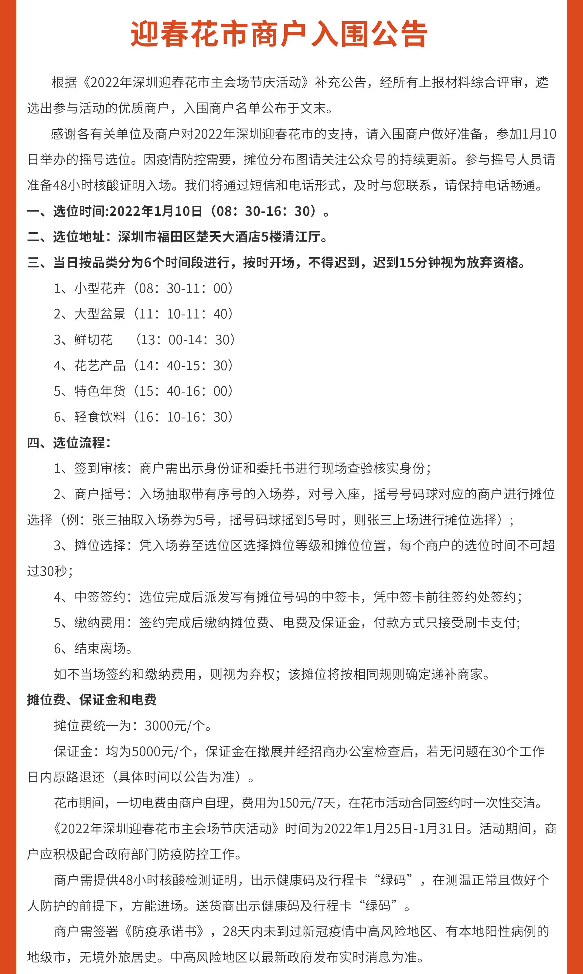 關(guān)于2022深圳迎春花市主會場節(jié)慶活動攤位設(shè)置的補充公告