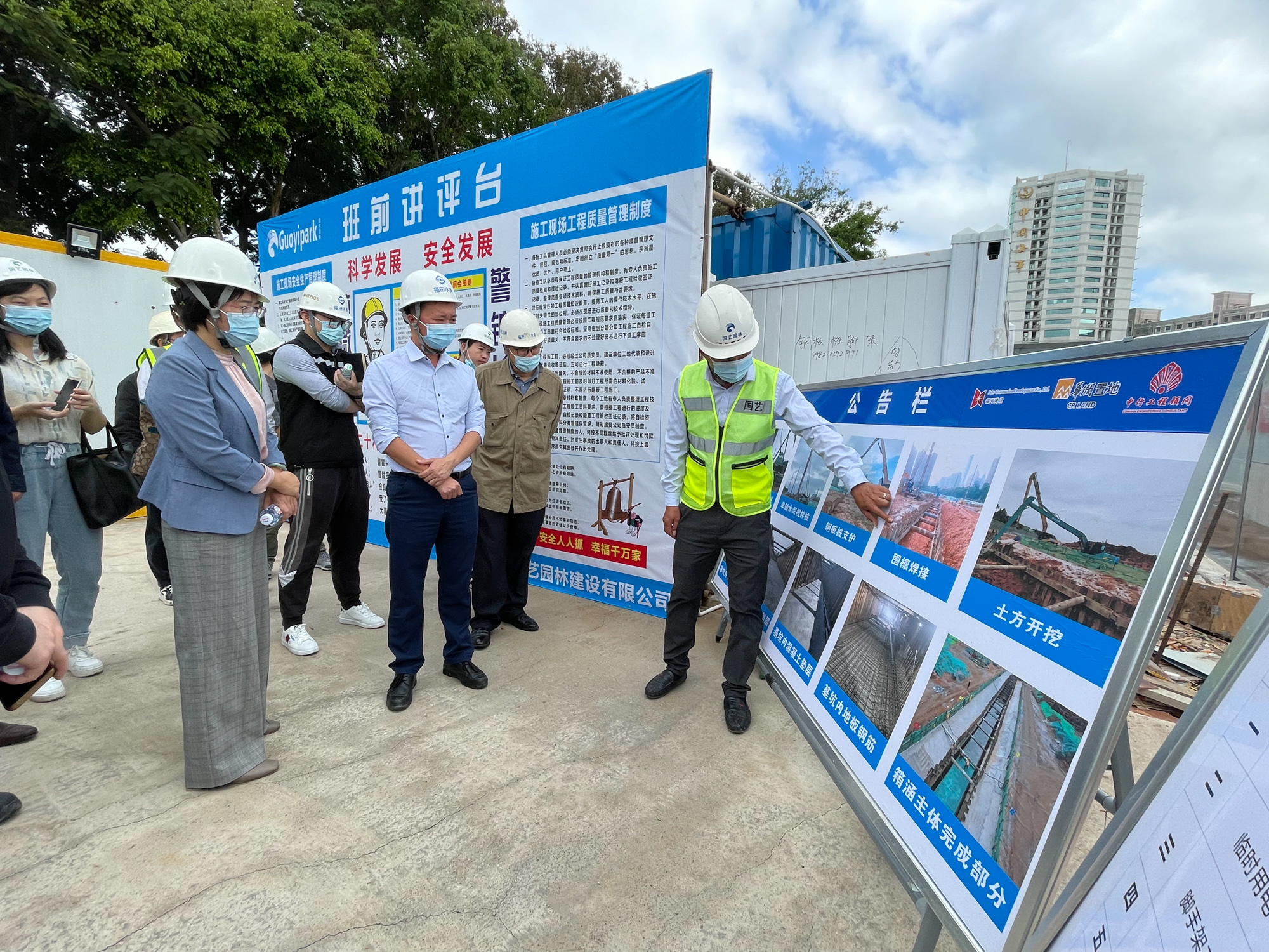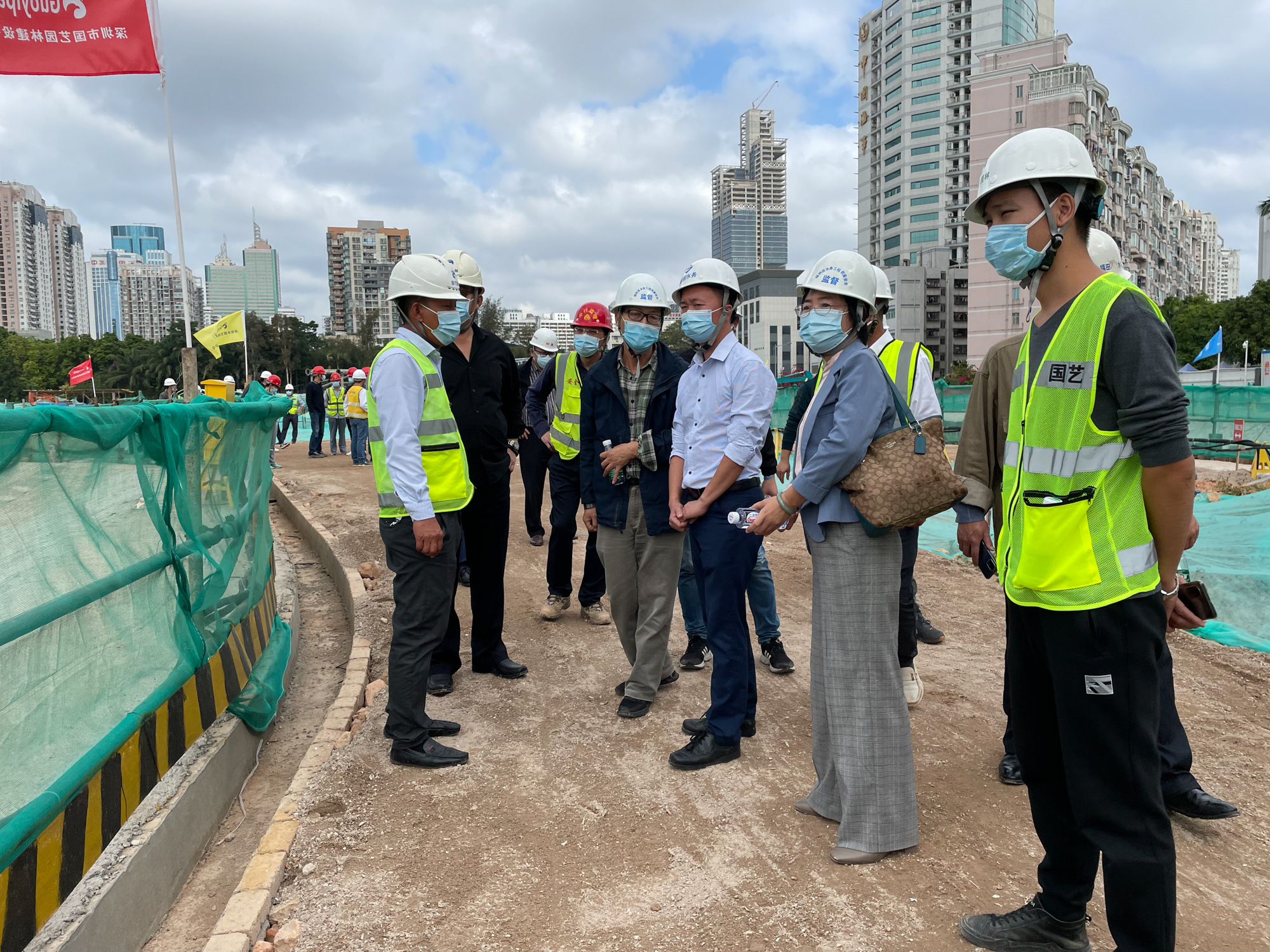 12月16日,在深圳市福田區(qū)河灣北片區(qū)改造項目(南華村棚改)項目開展安全文明施工現(xiàn)場觀摩交流活動。福田區(qū)區(qū)水務(wù)局副局長尹學(xué)康以及局屬相關(guān)部門負責人;福田區(qū)水務(wù)工程質(zhì)量安全監(jiān)督站林曉清站長及相關(guān)同志;深圳市福田福河建設(shè)開發(fā)有限公司副總經(jīng)理劉隆歡、工程代建單位華潤(深圳)有限公司項目經(jīng)理陳志軍、監(jiān)理單位深圳市中行建設(shè)工程顧問有限公司項目總監(jiān)湯小蔚、施工單位深圳市國藝園林建設(shè)有限公司項目負責人,以及區(qū)水務(wù)局各監(jiān)管項目的代建單位、監(jiān)理單位、施工單位代表蒞臨現(xiàn)場參與了此次觀摩會。