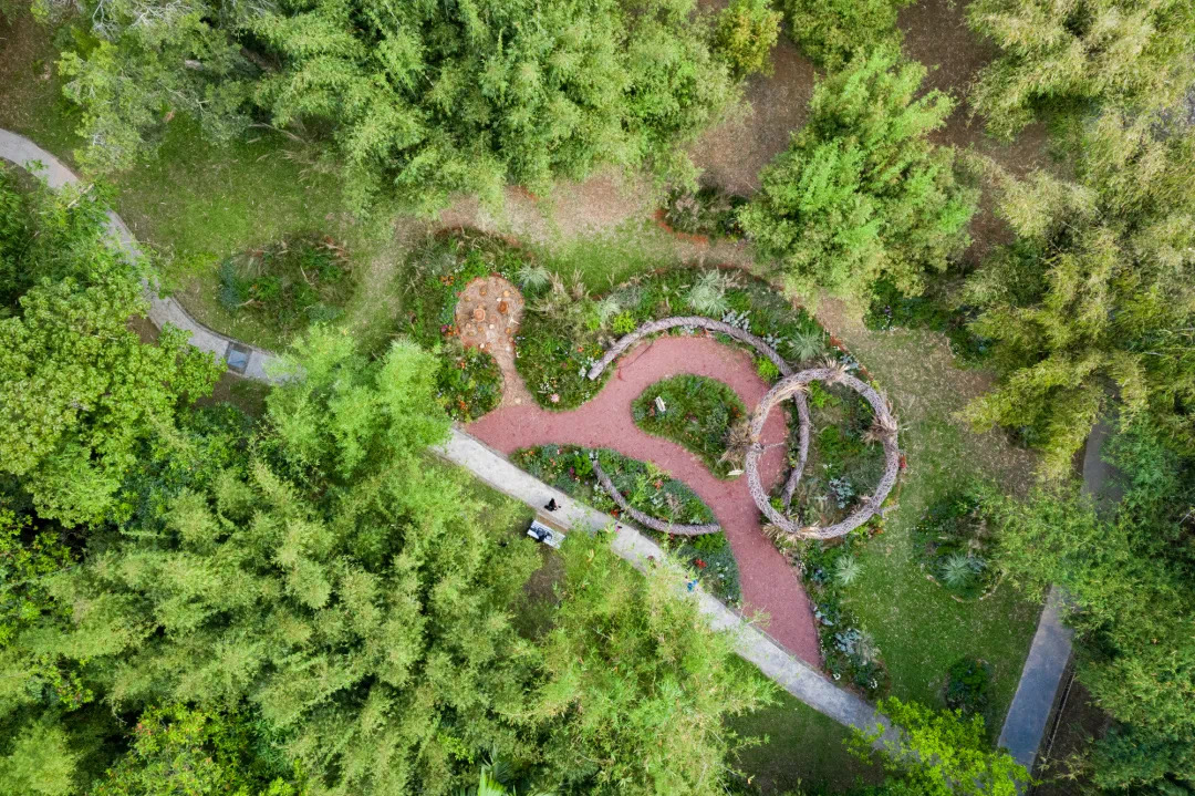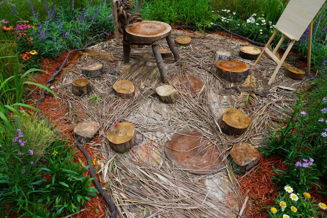 利用碎石、枯木藤條、麻繩等可回收材料,園展出后可二次回收利用,以肥料的形式再次回饋?zhàn)匀唬?/span>一個(gè)原野生態(tài)的低碳花園。