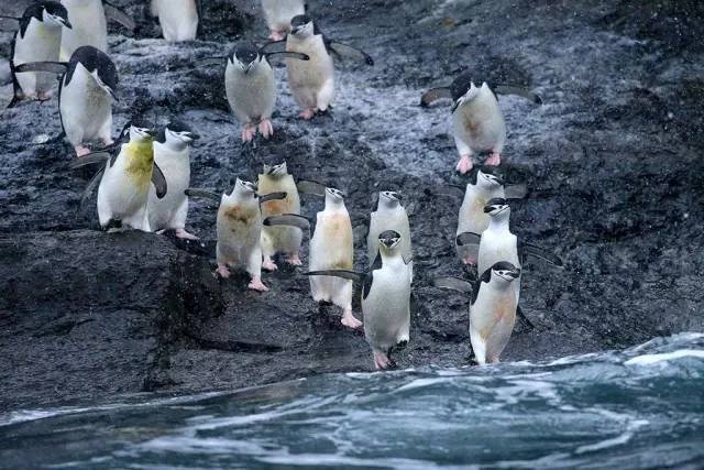 企鵝生存的環(huán)境里,并不是所有陸地都是平坦的。有一些企鵝上岸以后,需要翻越陡峭的巖石,跨過(guò)冰雪地區(qū),艱難的前行。